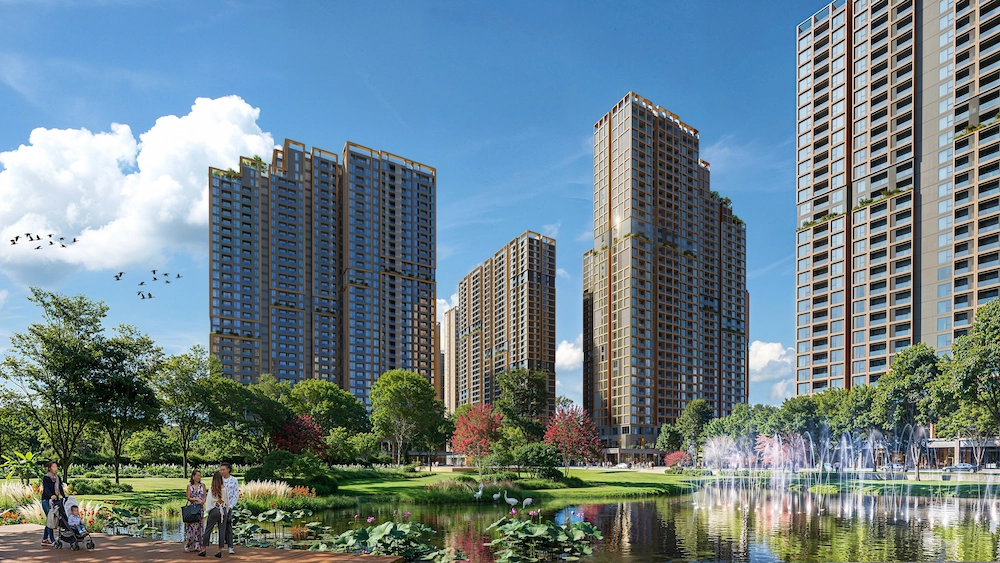 - Hệ thống Cây xanh và Mặt nước:Xung quanh các tòa nhà là thảm thực vật phong phú và hồ cảnh quan, mang đến cảm giác nghỉ dưỡng ngay tại khu dân cư.