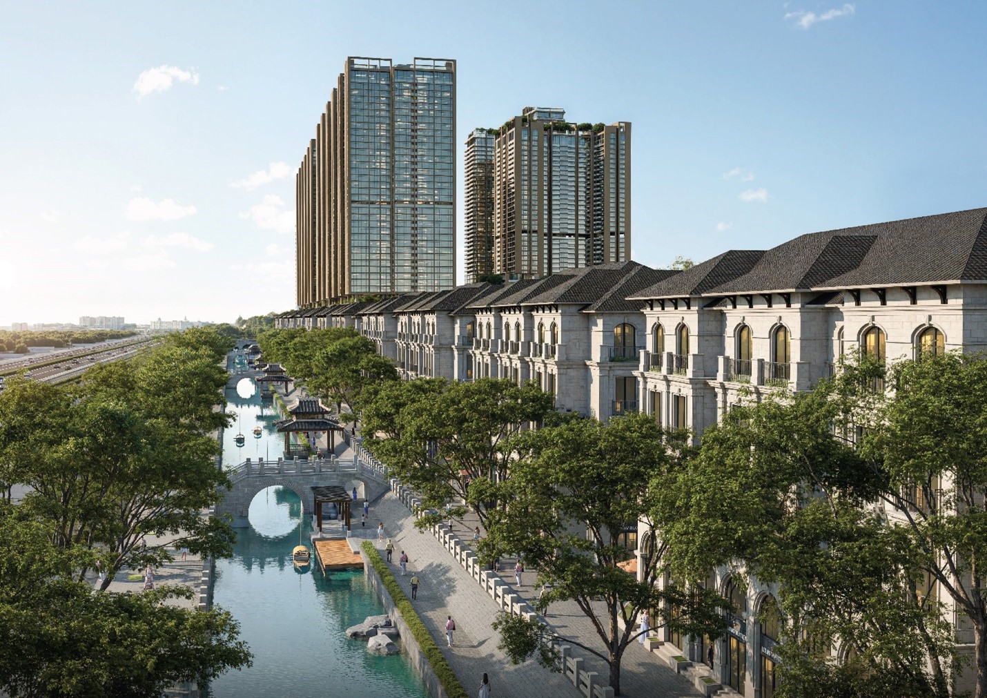 Lấy cảm hứng từ thương cảng Phố Hiến – trung tâm giao thương sầm uất bậc nhất Việt Nam thế kỷ 16-17, Sunshine Legend City Hưng Yên tái hiện không gian phồn hoa ấy qua các nét kiến trúc Á Đông, gợi nhớ những ngôi nhà gỗ truyền thống và các thương điếm xưa. Dòng sông di sản chảy xuyên suốt dự án được kiến tạo như một sân khấu ngoại, với các bến thuyền, nhà chòi, cầu đá vòm và thủy đình bát giác, mang đến trải nghiệm du ngoạn sông nước độc đáo.